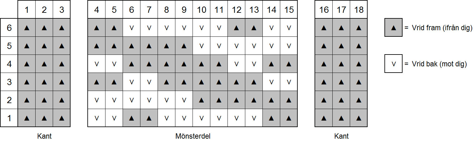 Kanten och mönstret har jag delat på för att underlätta läsning av vridmönstret.
