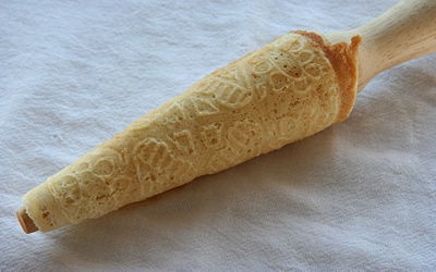 Rulla kakorna runt något strutformat – gör detta direkt eftersom de stelnar snabbt.